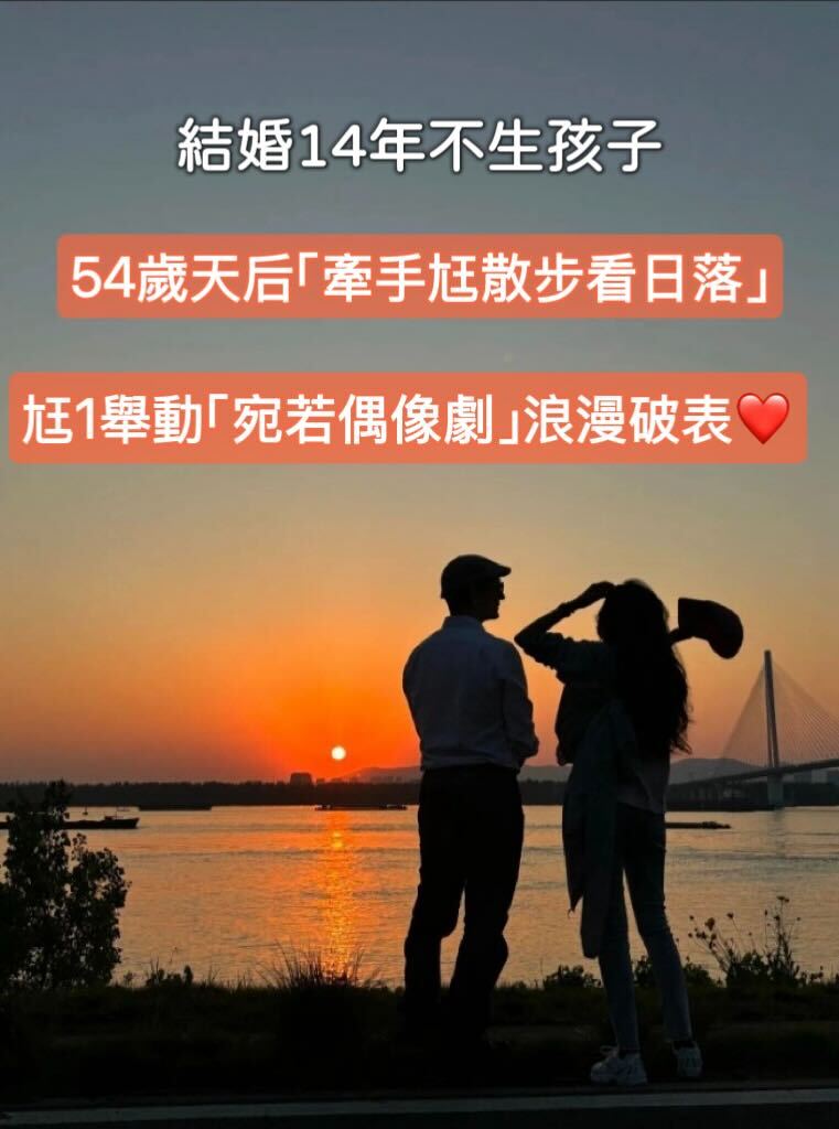 結婚14年不生孩!54歲天后被拍到「牽手散步看日落」 並肩背影「宛若偶像劇照」羨煞眾人:最美的愛情