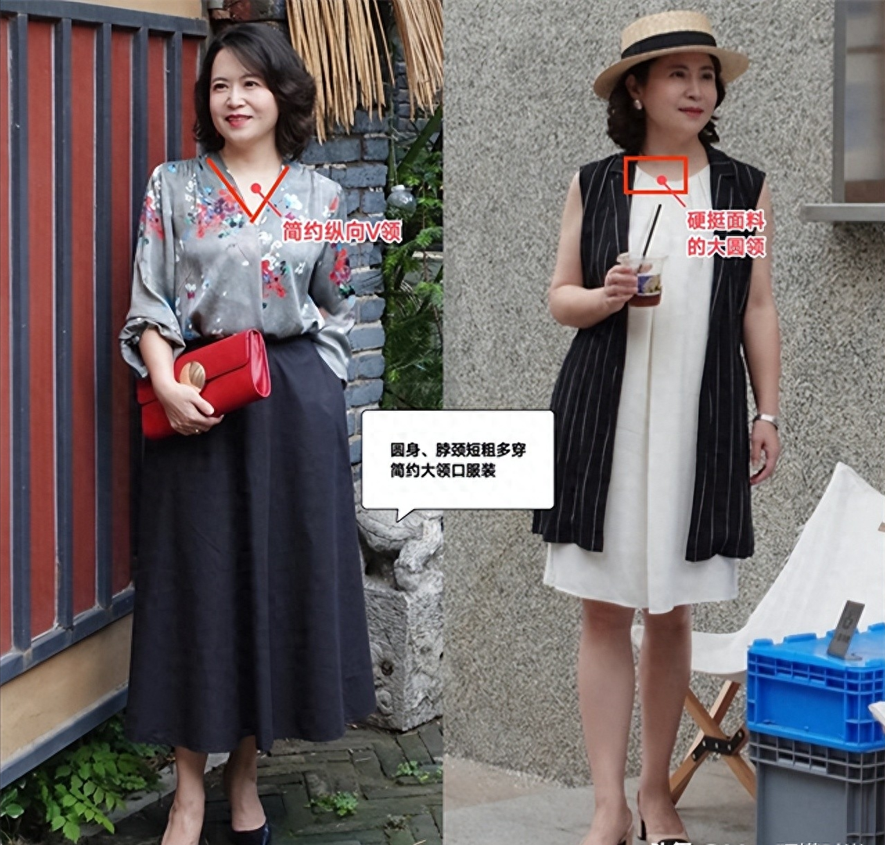 人至中年,在穿著上千萬不要過於保守,選擇包裹感比較嚴實的服裝,不僅顯得局促還會因為沒有修飾效果而顯臃腫。在服裝的選擇上要注意,一定要避開小圓領或高領服裝,顯得脖子短頭又大,V領、大圓領、方領等才是最佳選擇,既可以修飾脖頸線條達到顯瘦效果,又能讓著裝更加時尚。