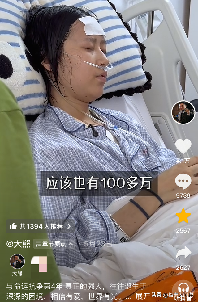 知名網紅「大熊」曾因為她的遭遇而同情她,並為其捐款,也就是在這期間,「呆呆羊」的故事被很多人知曉,據其透露,為了抗癌,整個家庭幾乎掏光了,自費100多萬人民幣。