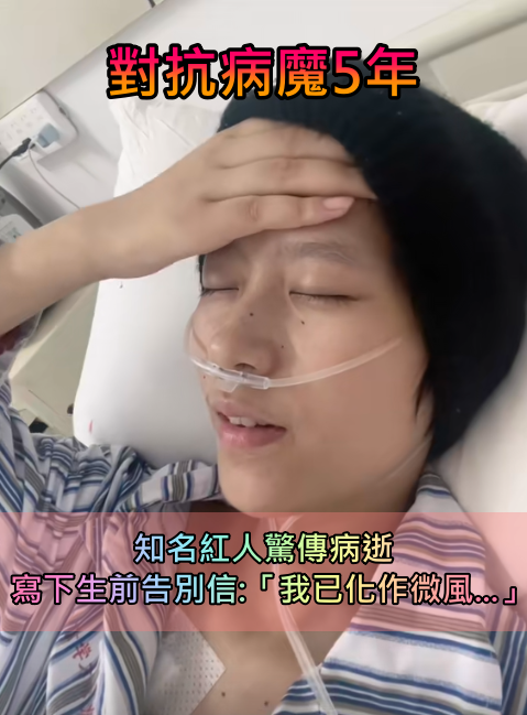 對抗病魔5年!知名紅人「驚傳不幸病逝」 寫下生前告別信:「我已化作微風...」