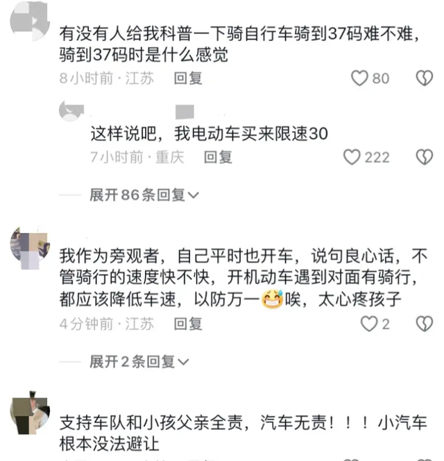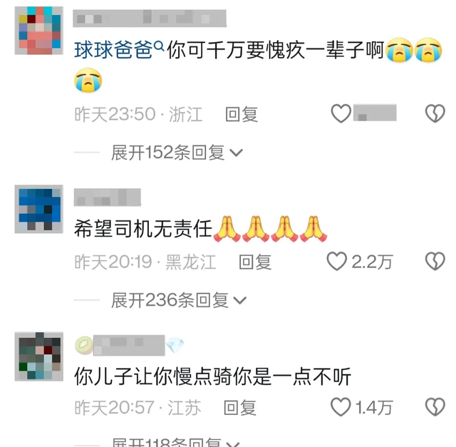 網友們紛紛表示:「確實,司機也挺冤的。在那種緊急情況下,任何駕駛都難以做出立即反應、去避開意外。突然間有孩子摔倒到車前,司機幾乎無處可躲。」、「關於這次活動的組織者,真是讓人費解,特別是有些人還去拉司機,是不是在試圖推卸責任?事實上,那個騎車的人是自己摔倒,而且騎得也挺快。」