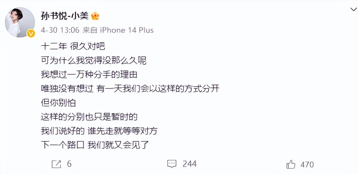 「夜還長,慢點兒走。」曾與孫博有過合作的藝人姚晨,開始在個人動態中悼念孫博。