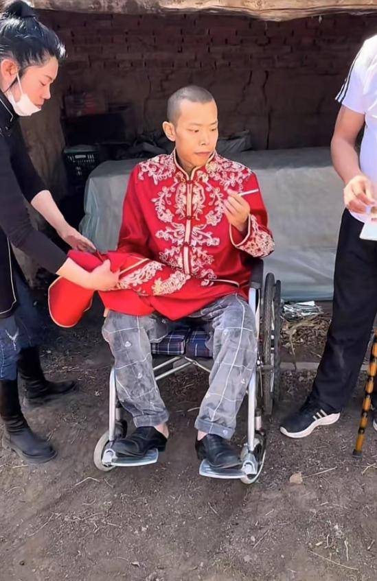 影片中,永剛身穿紅色新郎裝,如果不是坐在輪椅上,真看不出他是癌症晚期的患者,精神狀態還可以。