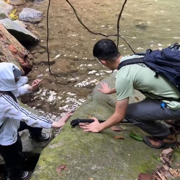為了擺脫蜂群,他們嘗試各種辦法,包括脫掉鞋子躲進水裡,甚至用火驅趕,卻通通沒有效果。就在幾乎要絕望的時刻,她注意到鞋子順著瀑布往下漂流,突然靈機一動——沿著山壁有條天然形成的「瀑布滑梯」,他們可以藉由溪降逃出去!三人終於成功脫困下山。