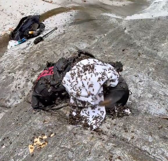 這名女子回憶,一開始只看到幾隻蜜蜂在周圍飛舞,他們壓根沒當一回事。沒想到蜜蜂數量不斷增加,最後整個蜂群直接朝他們三人發動攻擊,白色衣服上頭全被蜜蜂覆蓋,每個人身上都被叮咬了無數處!三人就這樣被困在原地長達一個小時,完全動彈不得。