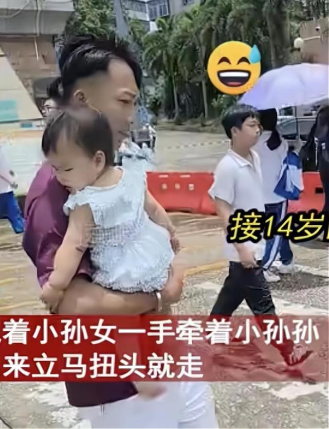 抱著孫女、牽著孫子!男子帶他們「去接14歲兒子」放學 一轉正面「網友全看傻」:難怪兒子不想認