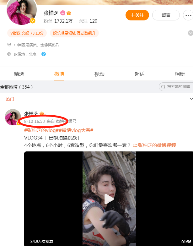 點進張柏芝的社交帳號,發現她最後一條動態是在8月10日,且整個8月份張柏芝就在10號這天更新過。值得注意的是,張柏芝在8月10日更新的動態,並非她近期的狀況,而是早在法國巴黎拍攝雜誌時的照片,認為有可能兩條動態都不是張柏芝發布的。