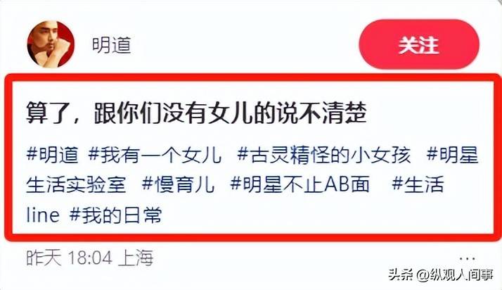 自從2019年結婚後,明道就減少了工作,開始將重心放在家庭上,而等到2023年女兒出生後,明道更是當起了奶爸。