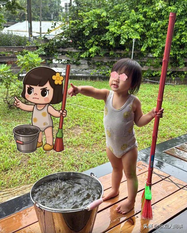 從照片中能看出來,明道一家是住在上海的別墅,有著超大的露天陽台,後面還有一個大院子,沒事的時候,孩子們就能在院子里奔跑玩耍,既舒適又安全,非常愜意。