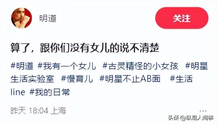 明道用手給女兒做著鬼臉,眼睛目不轉睛的盯著她,眼神里全是寵溺的表情。
