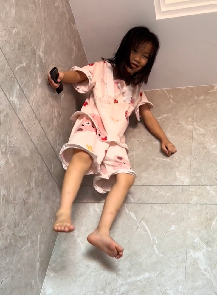 網友猜測是因為小女孩的體重較輕,加上當地氣候比較潮濕,所以會增加磁磚牆壁的黏性,這才讓她可以輕鬆爬上天花板,不過大家還是要注意安全,不要輕易嘗試喔~