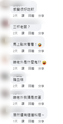 很快地,就有老饕跳出來解答了,原來「三杯嚇老外」 是由外國人最怕的三種料理:皮蛋、臭豆腐、豬血糕結合而成,並加上九層塔及米酒調味,雖然聽起來有點可怕,但有吃過的網友特地留言稱讚說「其實很好吃,我吃過,集合了三杯的香甜、九層塔的菜香跟三種食材的原風味」。