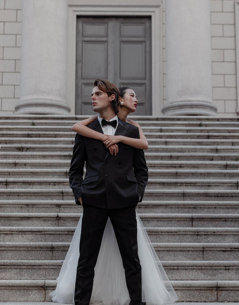 此外,這系列婚紗照也包含準新人穿著黑色婚紗、在隧道中狂奔。她透露,這組靈感是來自電影《我倆沒有明天》,在配以文字,「The Clyde to my Bonnie」,浪漫感幾乎溢出螢幕。