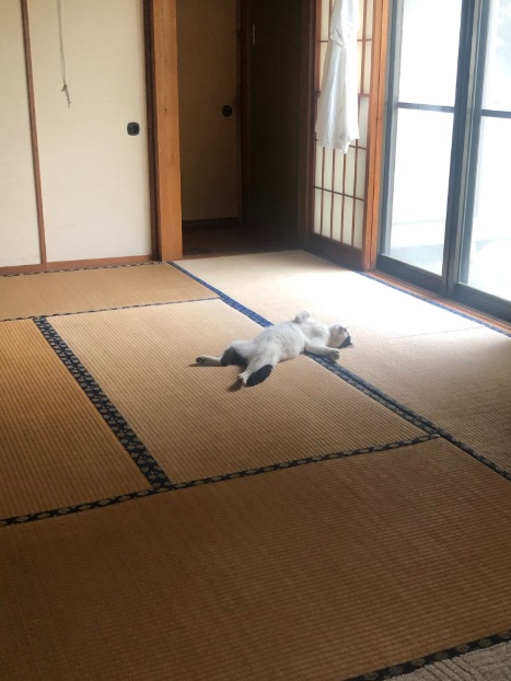 因為氣象預報颱風要來了,夜壹媽媽擔心貓咪自己在外面吹風淋雨,就決定把牠帶進家裡、讓牠先待在客房裡,本來還擔心貓咪不習慣室內生活、會感到緊張不安,想不到這喵倒是不在意,整隻睡到翻肚,當夜壹打開房門一看,當場笑到不行XD