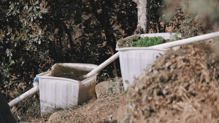 房子還沒修好前,葉子就住在簡易的帳篷裡,同時思考怎麼解決水電問題。