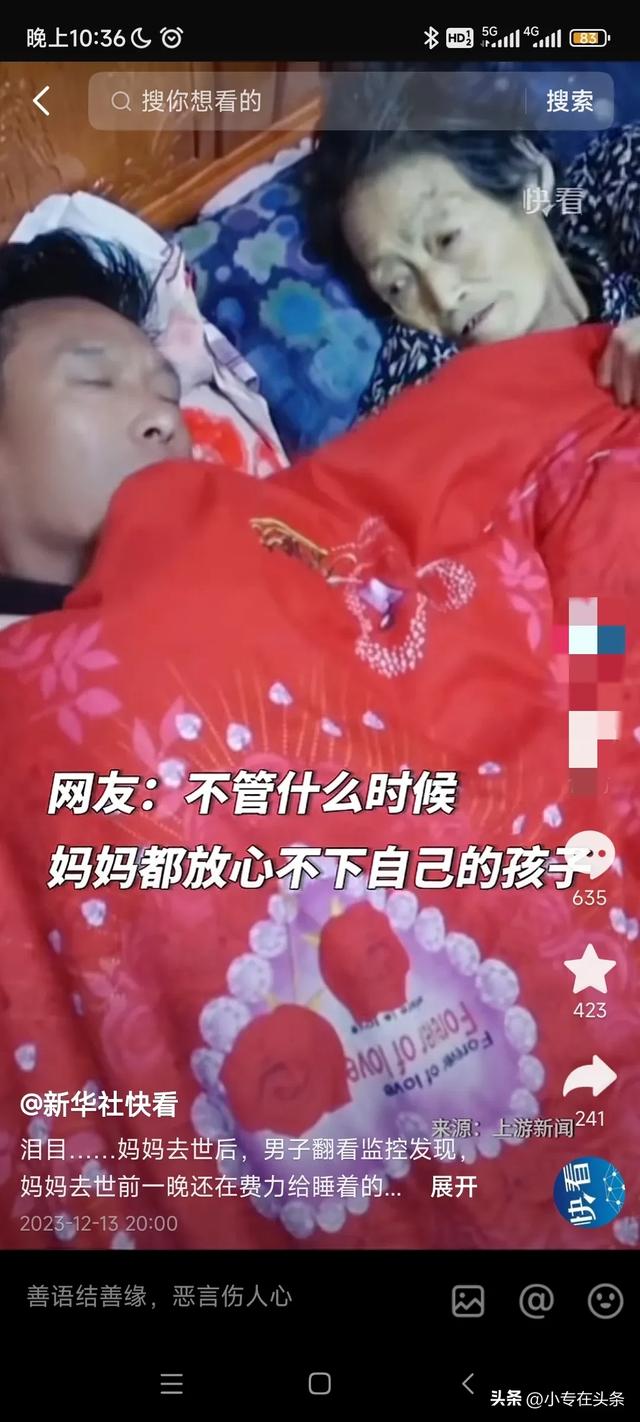 在陝西,一名男子的媽媽去世後,因為對於媽媽的思念,男子回去翻看家裡的監視器畫面,而監控下的一幕直接讓他眼眶濕潤,由於媽媽年邁身子不適,男子一直陪伴在她的身邊,在她去世的前一晚,男子太過疲憊就在媽媽的身旁睡著了,而媽媽此時費力的拖拽著被子給兒子蓋上,看著熟睡的兒子滿眼溺愛,即使在去世的前一晚,年過花甲的媽媽依然放心不下自己的孩子,寵愛著自己的孩子,這是偉大的母親,偉大的母愛。