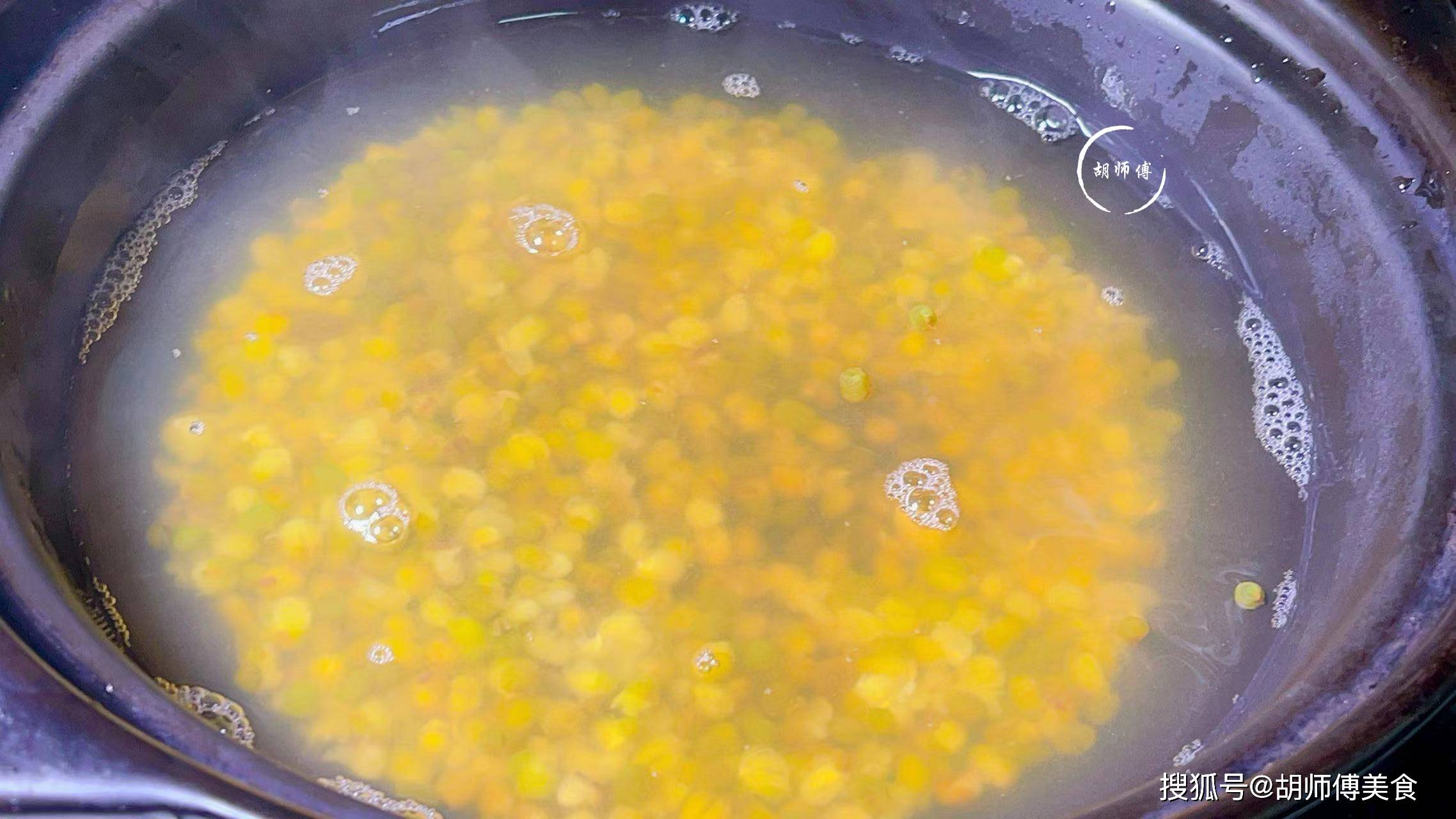 第四步:鍋中放入適量的水,大火將水煮到滾沸後,將綠豆放入到鍋中,中小火將綠豆煮15分鐘左右,直到將綠豆煮的出沙。