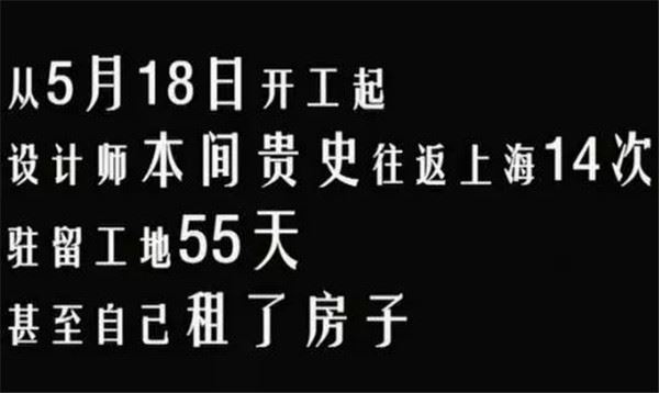 開工後的本間貴史,往返上海14次,駐留工地55天,還自己租了房子。