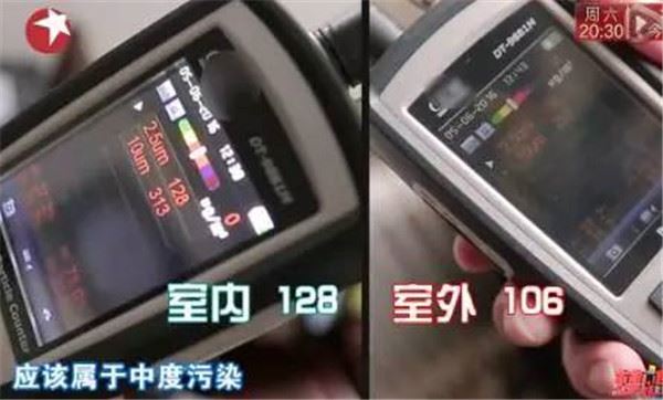 開工前本間貴史用PM2.5檢測儀和水質檢測儀勘測的檢測結果讓屋主大吃一驚:室外PM2.5隻有106時,室內的竟然達到了128,相當於中度污染。