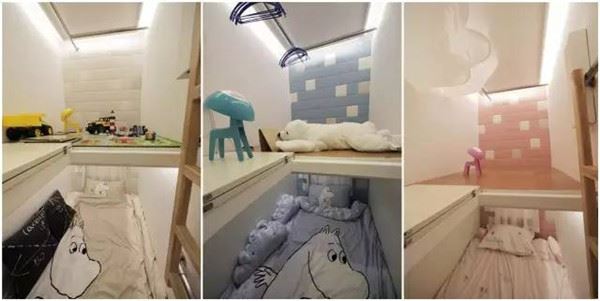 將臥室打造成了3個膠囊房,上下兩層。