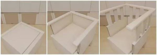 那「三段椅」是什麼呢?「三段椅」就是將12把椅子通過組合變化,構建出嬰兒床、沙發和床鋪。