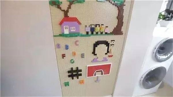 一整面的樂高牆,不需要再額外的收納,還是一道美麗的風景線。