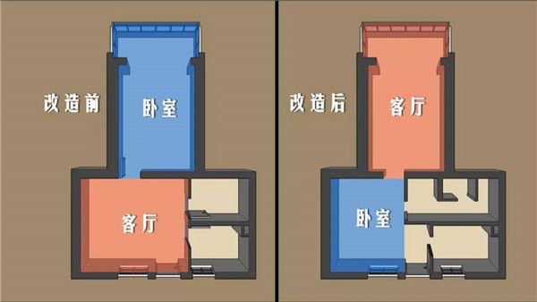 最大的亮點在於客廳和臥室的對調,朝南帶陽台的臥室變成了客廳。