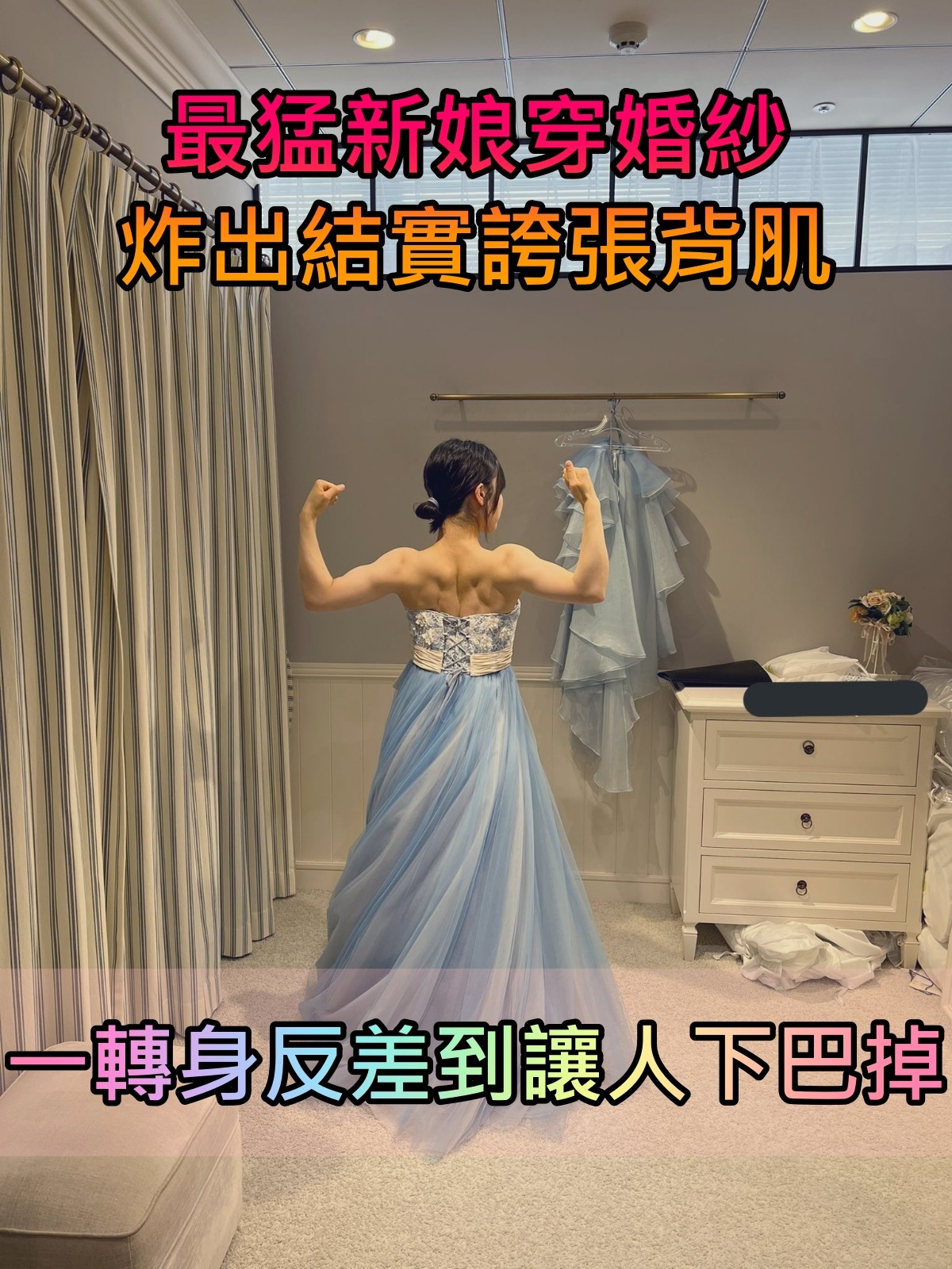 那個肌肉真的太猛啦!!!小編如果穿那件婚紗,應該只會溢出滿滿肥肉XD