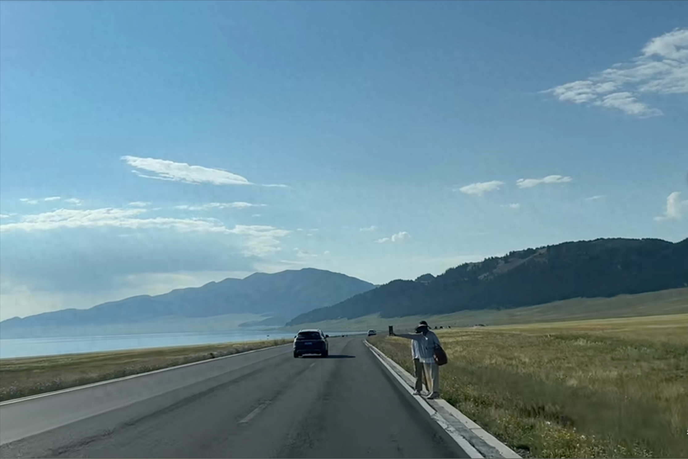 要知道在去新疆的這段路途中,地廣人稀,基本是沒有行人的,全部都是來來往往的車輛,那麼這對母子為什麼會在這裡攔車呢?