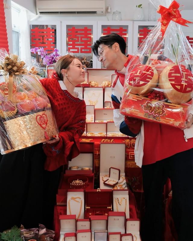 譚杏藍日前在社媒貼出多張相片,雖然簡單寫道:「15.02.25 過大禮,滿滿的祝福,準備正式成為一家人啦!感謝各位幫忙。」但從她分享的照片所見非常誇張。