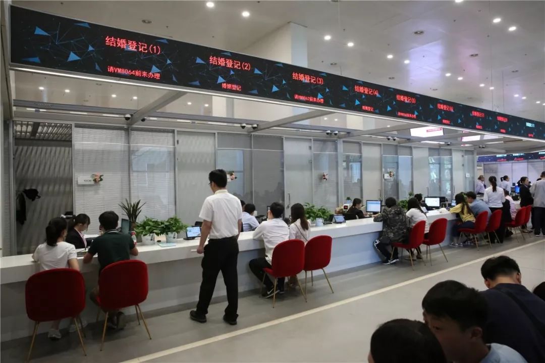 由於前面要結婚登記的人特別多,於是,我們就領取了一張號碼牌,坐在一個長椅上等待了。
