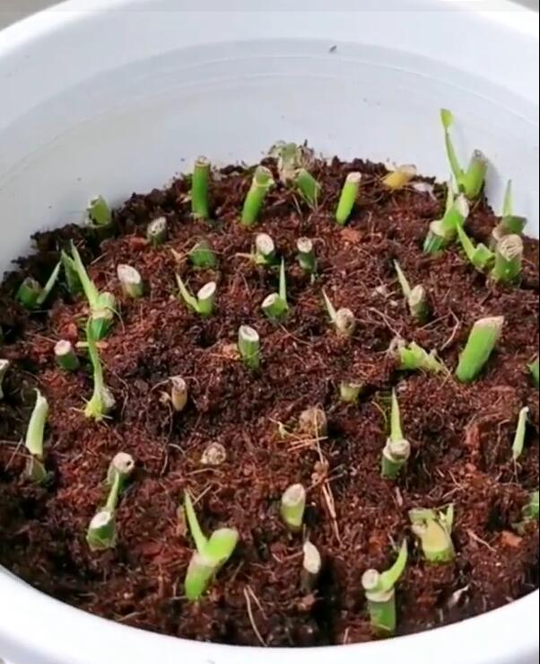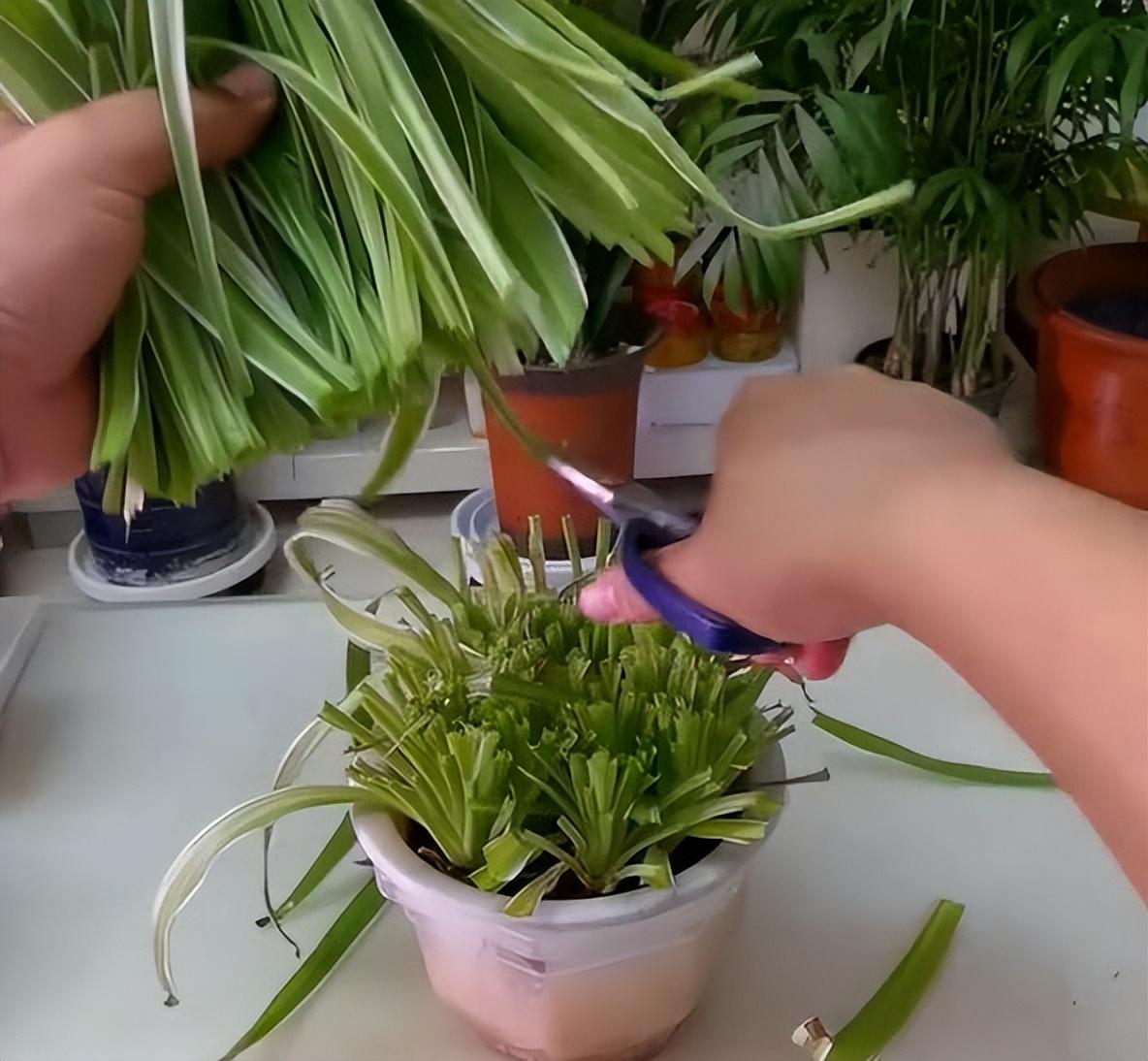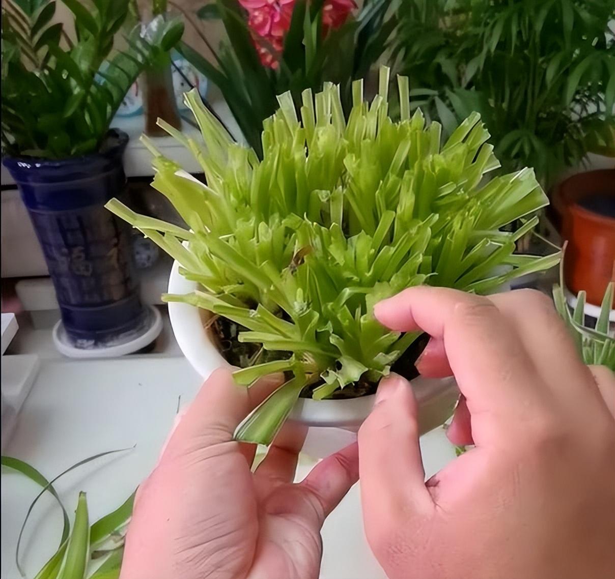 只根系健壯的吊蘭,我們就可以狠心剃頭,把它的葉片全部剪掉,留下土層以上3—5厘米的部分,用來進行光合作用。
