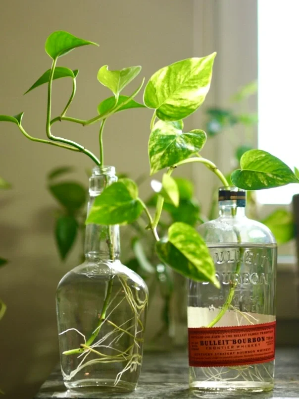 剪下來的枝條,我們也不要扔掉,可以再扦插一盆新的綠蘿,方法也簡單,可以直接水培,一般7-10天就能生根,當發現有新葉子長出來,就可以轉土培,也可以一直水培,只需要偶爾加點營養液,就能長得很茂盛。