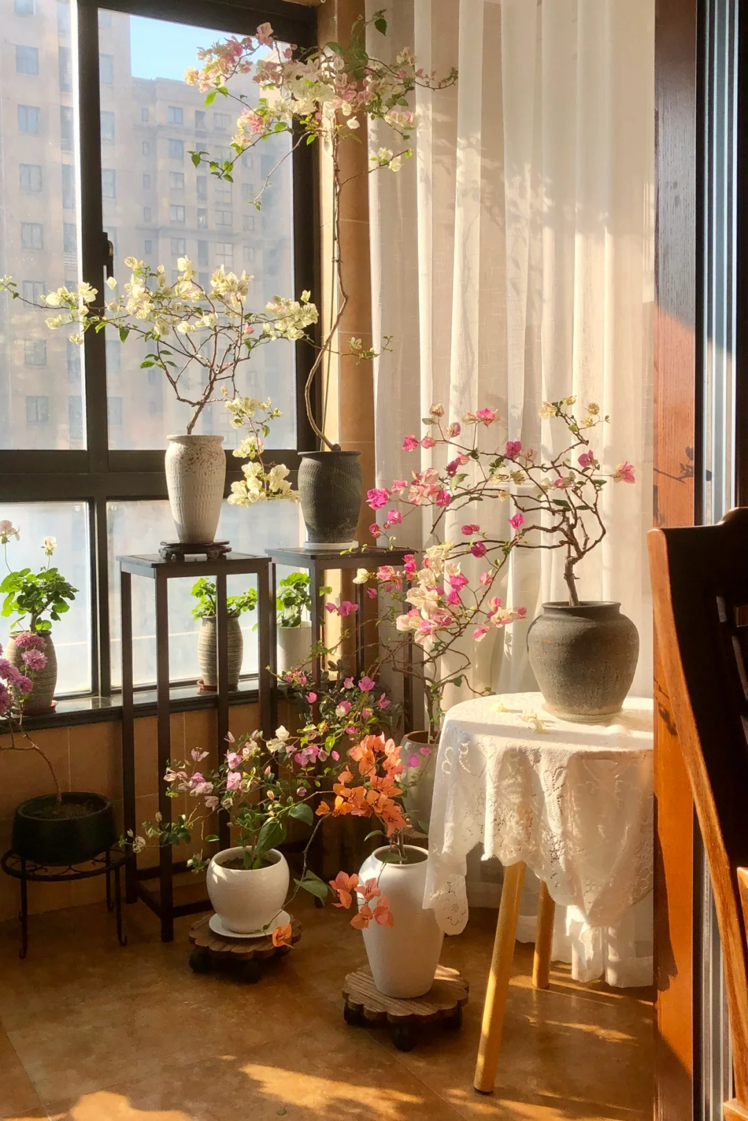 除此之外,三角梅的品種也很多,花色特豐富,可清新素雅,仙氣飄飄;也可以飽滿亮麗,絢爛如畫。且花期長,一茬花可以持續開一個月左右,一年能多次開花,盆栽的幾乎能四季見花,所以喜歡的人很多。