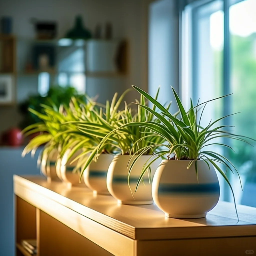 吊蘭的品種有很多,大多數都葉片修長,飄逸灑脫,雅緻如蘭,好養如綠蘿,對光照及通風的要求都不高,放在哪裡都好看。