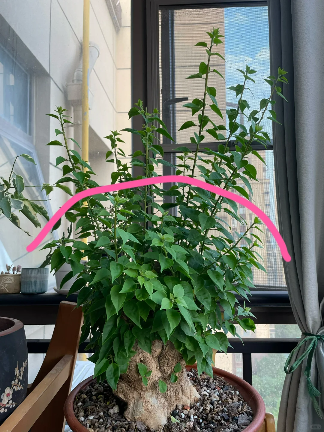 遇到這些情況,都可以通過「剃頭」來解決,進行一次大修,激發三角梅的生長活力。
