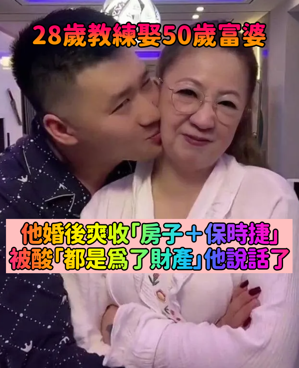 不顧爸媽反對!28歲健身教練「娶50歲富婆」狂放閃 婚後爽拿「房子+保時捷」戀情被狂酸他回應了 哈茲咖西 2023-03-22 檢舉 即便遭到爸媽反對,小李仍舊要跟孫阿姨結婚,而且婚後不久就收到女方送的房子和保時捷!雖然很多網友都看衰兩人:「男生就是貪圖錢才在一起的」但小李卻強調,他們是真愛,不是因為妻子有錢才跟她在一起,而且自己會實現長久在一起的承諾,不管別人怎麼看,只要他們幸福就好~(來源:搜狐號) Advertisements 雖然說跨越年齡的戀愛很讓人佩服!但不管是不是真愛...只能說有錢真好啊XDDD來源:搜狐號 Advertisements 回首頁 2/2 Advertisements 猜你會喜歡 差42歲的爺孫戀!69歲爺爺「愛上27歲大眼嫩妹」 被笑娶看護回家「結婚5年現況曝光」讓酸民全閉嘴 編輯精選推薦 More + 氣質甜美都可以!櫃檯前「超吸睛背影女孩」穿搭好時髦 一轉身「圓嘟嘟白皙臉蛋」無辜表情太勾追❤️ 退休迷上交際舞!她58歲痛訴「舞團內水太深」 跳了3個月「寶貴的家庭全毀」只能用餘生懺悔 年前造禍!高雄蓮池潭「煙火轟向人群」有如砲彈 駭人畫面曝光「抱孩子狂逃命」 刮刮樂怎麼買?她靠「5秘訣」花500中5000:每年0賠 出事了!雙冠名將「驚傳陳屍山上」死因曝光 人人稱羨跨國婚!富商男子「娶小12歲烏克蘭美女」 11年後妻卻出軌「對象讓人傻眼」 雙層巴士司機詭異「硬過限高橋」!「車頂瞬間削平」導致20傷瞬間畫面曝光 快訊/初二走春遇死劫!一家4口騎車出遊「母慘撞山壁」 搶救1小時不治「釀禍原因曝光」 「1張圖」揭台灣有多強!瑞典記者也驚豔:「難怪中國想統一」 宥勝爆離婚!老婆鬆口「年前就已經搬出去」 認「沒想到孩子」:靈魂被抽乾 過年5姑姑回家!炫耀自家孩子「逼問他年薪多少」 他試一招「嚇得對方臉色垮下來」 小18歲姊弟戀未果!60歲資深玉女「拋震撼彈退出歌壇」 上台直言:「對不起觀眾」 千萬別救我!女大生驚傳「宿舍內輕生亡」 生前遺書曝光:「爸爸,放過我吧...」 包1200給親戚小孩!他竟當場拆紅包嫌棄「你好窮~」 正想開罵「下秒親戚出聲了」尷尬到最高點 最新/3度中風送醫!資深男星爆離婚「斷50年髮妻」 「砸1億淨身出戶」家族爆紛爭 沒看到五星旗!中國客怒逼「塗掉台灣國旗」 德國畫家「1句話嚇跑他」 才被檢調搜索!高金素梅遭爆「介入楊繡惠感情」 她痛哭「第一次都給了」男星回應了 孩子的「壓歲錢」給到幾歲合適?建議不要超過「這個年齡」 不合規矩還徒增尷尬 老爸來住15天「老婆擺了20天臭臉」! 過年岳父要來住「我靜靜做一事」老婆氣炸但卻無法反駁 大年初一!錢包裡記得放「這樣東西」一整年都會有橫財 財運好到沒朋友 該怎麼給才得體?大姑給兒子2000元壓歲錢「可她家有3個孩子」 一位寶媽「機智應對」被讚高明 只靠輸液續命「脊椎四處骨折」!25歲女飽受摧殘「獲准安樂死」高興痛哭:謝謝爸爸放我走 以為是犯法!監理站突通知「竟然是6000元紅包」 網「一看原因」超驚訝:這紀錄太猛... 川普曝「我不喜歡她說話口氣」!所以對這國「加徵39%關稅」 「女兒們,對不起!」44歲媽媽選擇「遠赴瑞士安樂死」 臨走前「向女兒們最後訣別」惹哭無數網友...