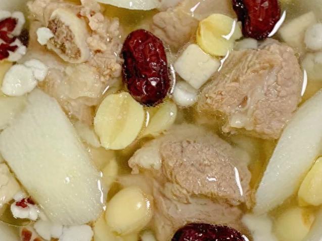 準備食材:山藥,茯苓,蓮子,芡實,紅棗,排骨,薑片。
