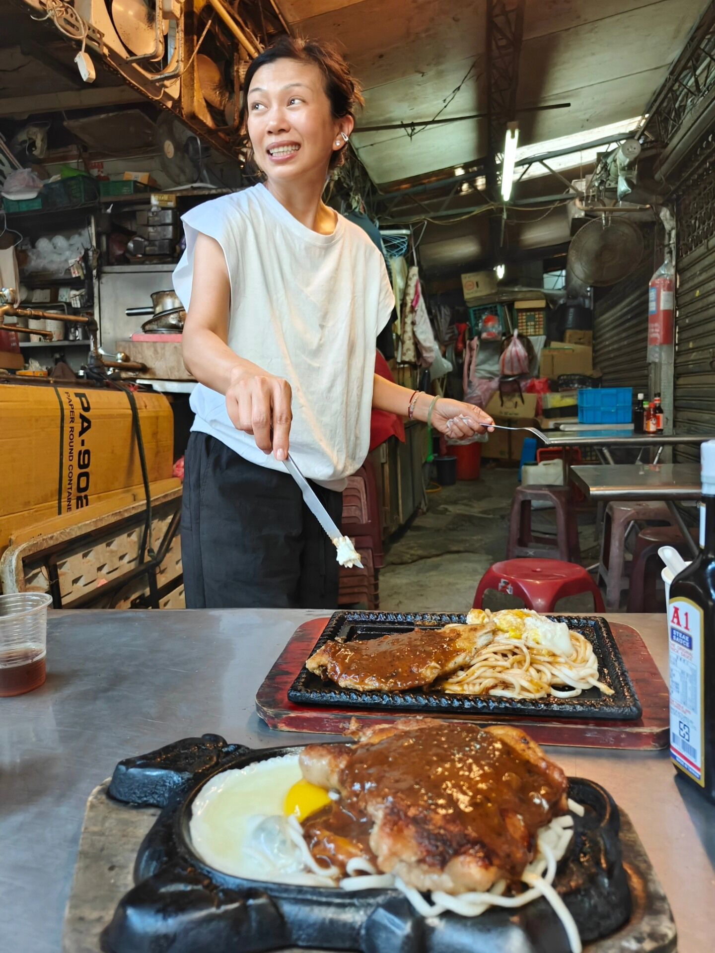 只見Summer身著一件白色寬鬆上衣搭配黑色休閒褲,頭髮隨興地向後梳理。然而,讓人不禁笑場的是,她並沒有好好坐著品嚐美食,而是緊張兮兮地站在桌邊,手持牛排刀,臉上露出焦慮的神情,宛如在進行什麼高難度任務。原來是老闆特別提醒白色衣服要小心沾到醬汁,於是Summer才做出這種戒慎恐懼的防禦姿態。蕭敬騰看到老婆這模樣覺得特別可愛,還在貼文中放了好多顆愛心,甜蜜喊道:「謝謝老闆,我老婆真可愛。」