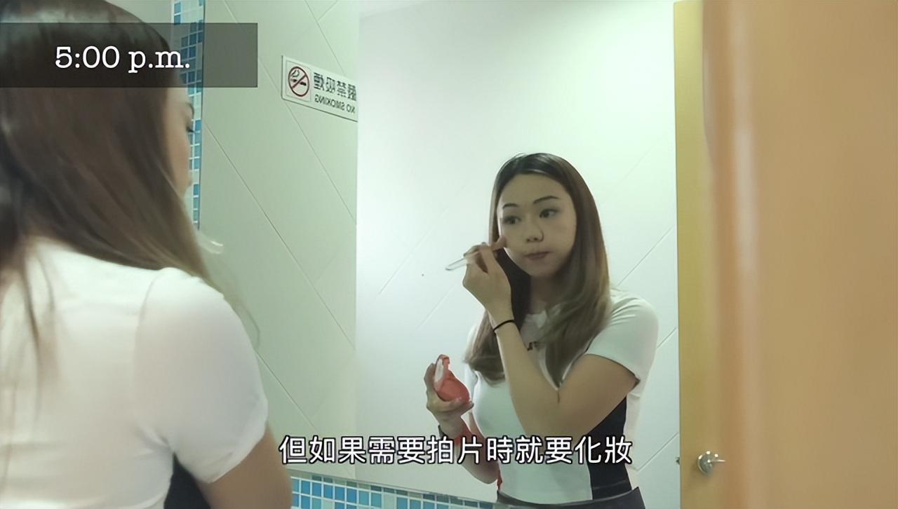 健身課結束,回到公用廁所簡單梳妝,利用健身房的公用休息區,開啟她的視頻副業。