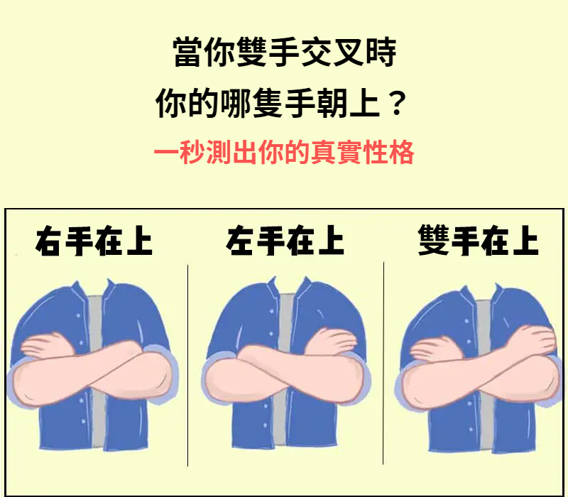 當你手臂交叉時「你的哪隻手朝上」 ?立刻測出「你的真實性格和戀愛觀」