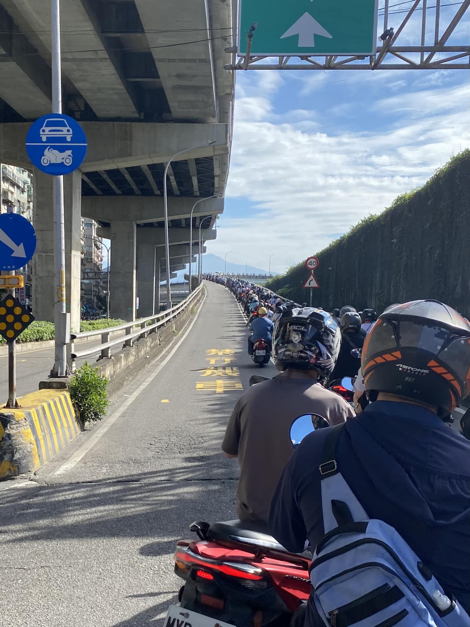 台灣奇景!台北橋「超狂機車瀑布」紅到國際 她曬出「罕見上游照片」通勤族崩潰:看不到盡頭