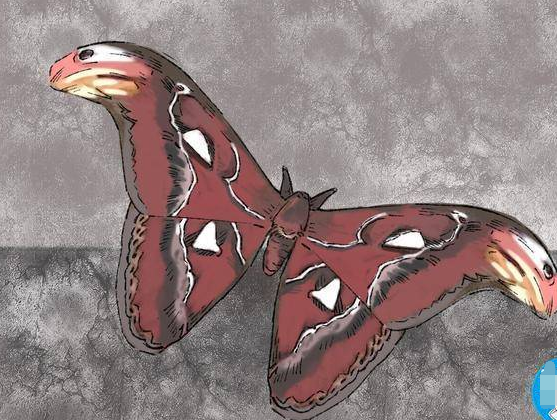 科普:蛇頭蝶的學名叫烏桕大蠶蛾,屬鱗翅目大蠶蛾科,而且它也是世界上最大的蛾類,翅膀展開後可長達180-210毫米。