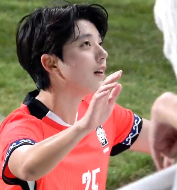 這位近期討論度超高的女足球員名叫做全維卿(전유경),出生於2004 年1月20日,目前在韓國國家女子足球隊擔任前鋒。近日一段在Coupang Play女足友誼賽事上所拍攝的影片引起瘋傳,畫面中的她頂著短髮走到場邊,模樣看起來既帥氣又可愛,甚至有不少網友認為這顏值根本不輸給男團偶像!