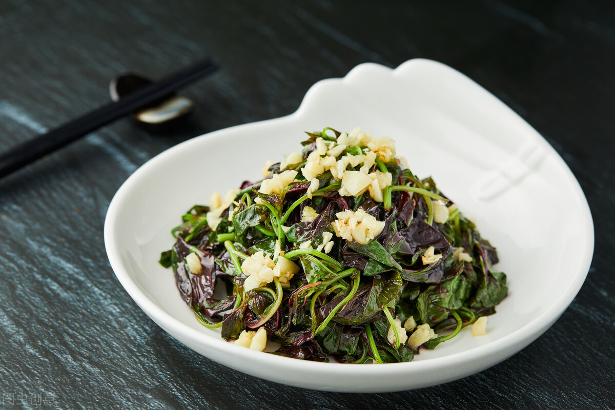 小時候端午這天,大人會百般要求多吃紅莧菜,奈何看見紅莧菜的紅色湯汁著實不舒服,不過到了現在,反而更加喜歡了,配合蒜末簡單的清炒更是美味,不過紅莧菜中「草酸」含量很高,吃的時候一定要炒熟透,涼拌的時候同樣要焯燙熟透。
