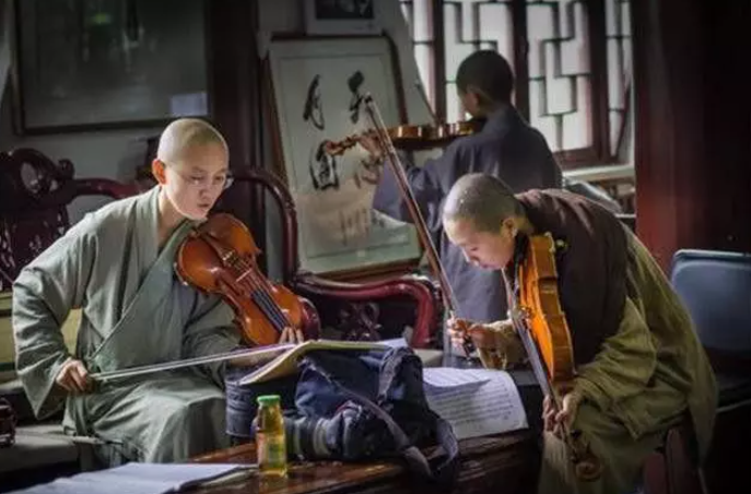 可她卻樂在其中,很享受這樣的日子。她不僅主動去承擔寺院裡打雜的活,甚至還自主學習了禪樂,帶頭組建了廣玄藝術團。