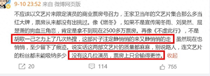 影評人也表示胡歌以一己之力上了幾次熱搜,才讓這部電影被更多人知道,否則它的下場必定和其他文藝片一樣從無聲中來,於無聲中去。