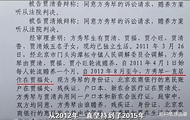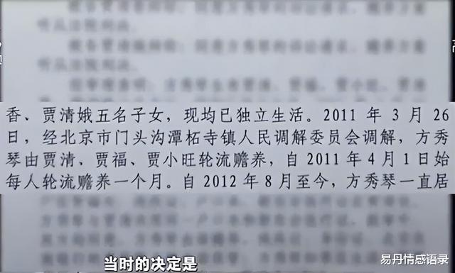 賈福表示,是因為他們的母親在2011年就開始大小便失禁了,賈小旺嫌棄這樣的母親,於是就不再按照協議去接母親。