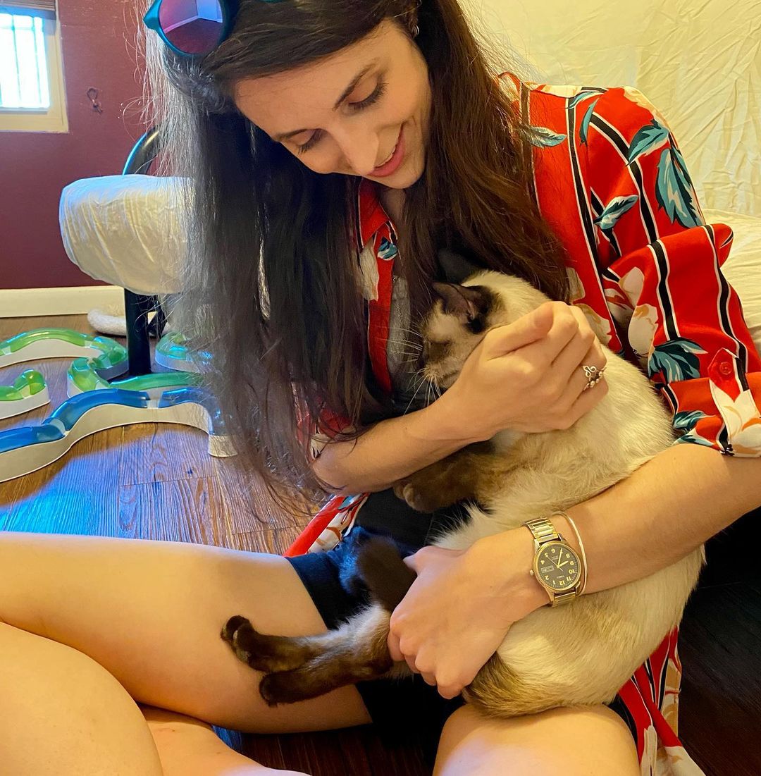 後來「Poets Square Cats」將悲傷嘴珊姆的故事分享到網路上,被一名住在麻塞諸塞州的女子凱特(Kate Perillo)給注意到了,她從小就在暹羅貓的陪伴下長大,她和母親一起在家養了好幾隻暹羅貓,不過最後一隻已經在2015年離世了,而兩年後凱特的母親也過世,摯愛的貓咪與母親都不在身邊了,讓她一直想要再養貓來陪伴自己,直到她看見了珊姆的故事。