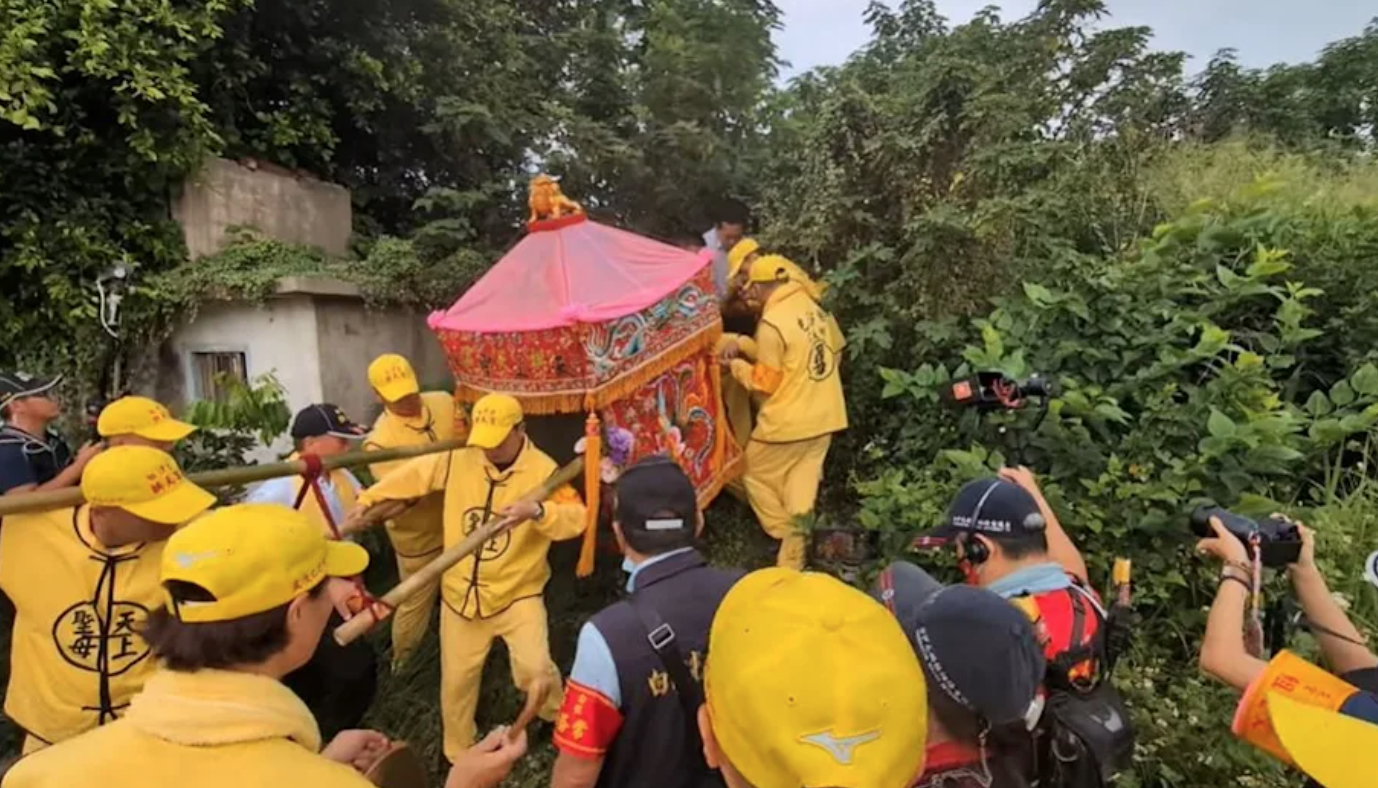 當時,有信眾將現場的畫面上傳的社群網路上。從畫面中可以看到,神轎一行人突然朝草叢中進發,由於坡度極陡,扛轎人員更是努力撐持,一路進入至一處地點後停下,廟方人員也馬上上前以金紙、紅漆坐上標記,卻不知內情為何。
